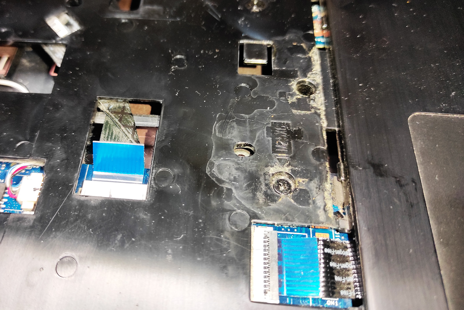 Najgroźniejsze w zalaniach nie jest samo pojawienie się płynu, ale to, co dzieje się później. Osad po kawie i wilgoć zaczynają powodować korozję, a w niektórych miejscach mogą prowadzić do zwarcia lub degradacji połączeń.