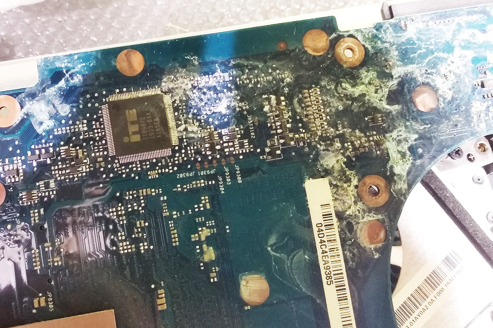 - zalanie może uszkodzić nie tylko płytę, ale też taśmy, złącza i elementy obudowy,
